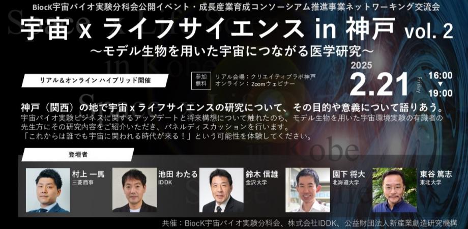 神戸(関西)の地で宇宙xライフサイエンスの研究について、その目的や意義について語りあうイベントです。